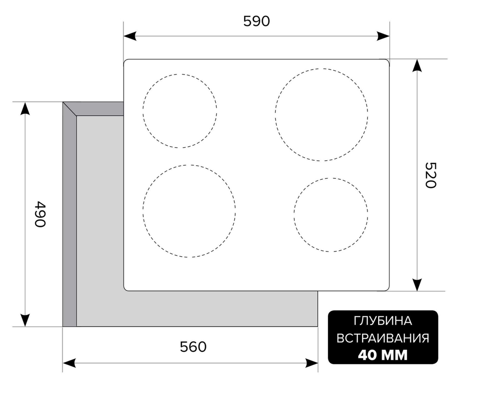 i Расположение панели управления варочной поверхностью относительно конфорок. Если панель расположена сбоку, она будет справа.