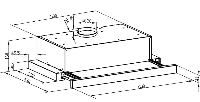 LEX HUBBLE 2M 600 WHITE встраиваемая вытяжка телескопическая