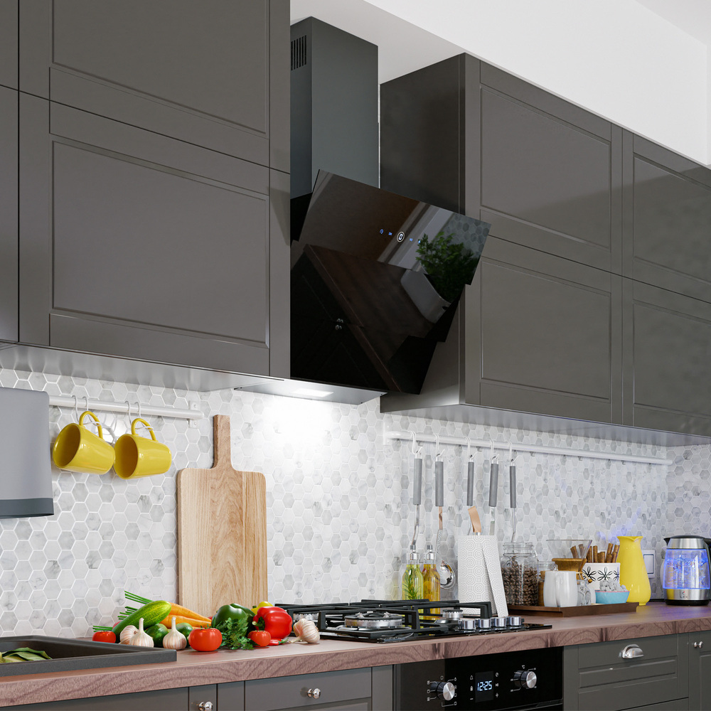 i В зависимости от расположения существует несколько типов установки кухонных вытяжек: встраиваемые, стандартные, пристенные, островные и др.