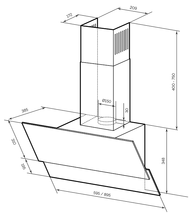 LEX ARIA 900 WHITE вытяжка наклонная