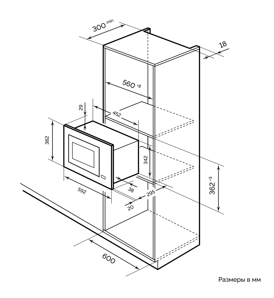 i Ширина корпуса электроприбора. Особенно важно точно знать точную допустимую ширину для встраиваемой техники.