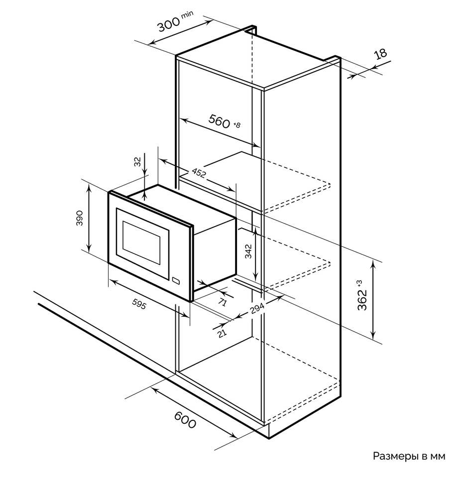 i Ширина корпуса электроприбора. Особенно важно точно знать точную допустимую ширину для встраиваемой техники.