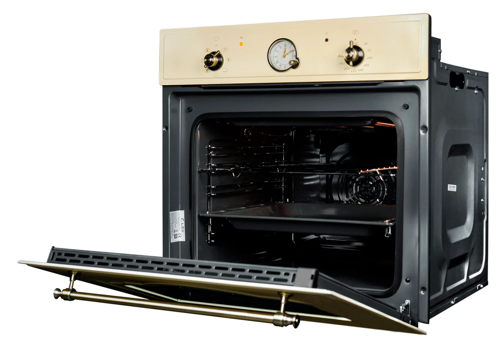 i Предполагает наличие встроенного вентилятора, который обеспечивает равномерное запекание благодаря непрерывной циркуляции горячего воздуха.