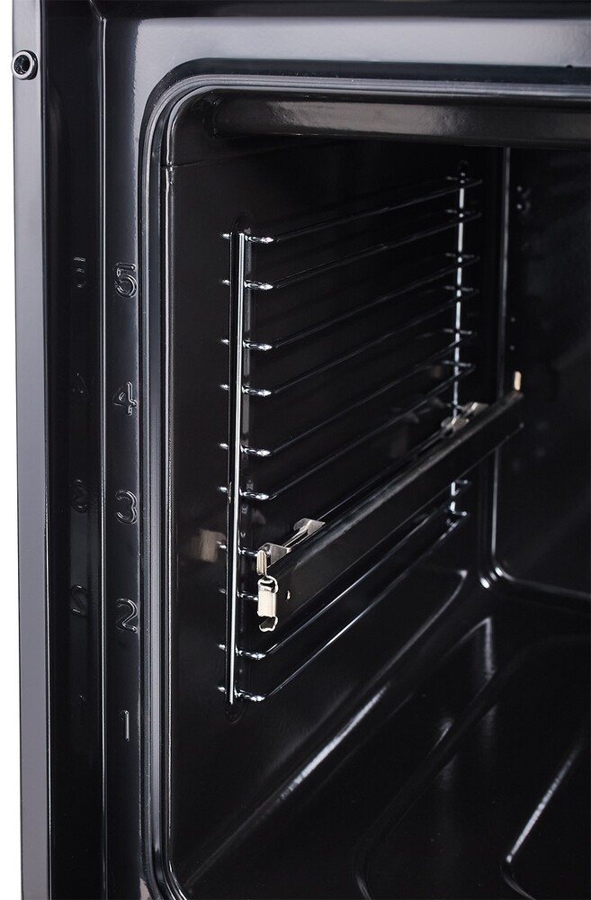 i Выдвижные металлические полозья, которые легко выезжают за пределы камеры духовки вместе с противнем, не давая ему упасть.