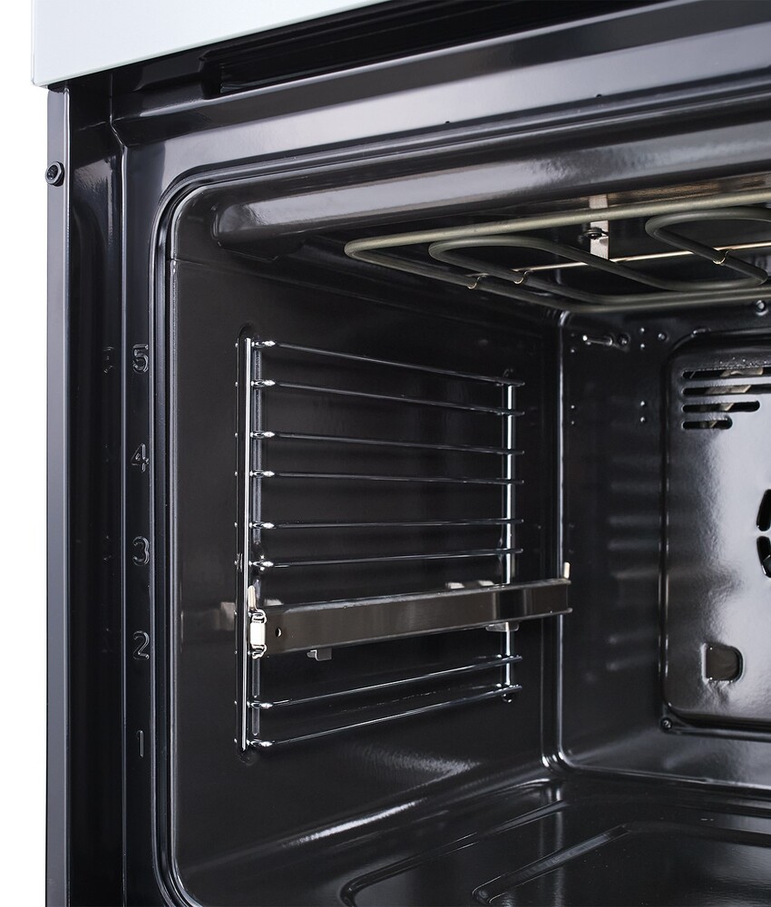 i Выдвижные металлические полозья, которые легко выезжают за пределы камеры духовки вместе с противнем, не давая ему упасть.