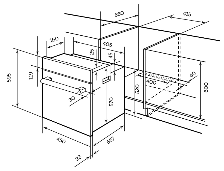 i Ширина корпуса электроприбора. Особенно важно точно знать точную допустимую ширину для встраиваемой техники.