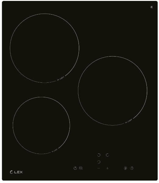 i Расположение панели управления варочной поверхностью относительно конфорок. Если панель расположена сбоку, она будет справа.