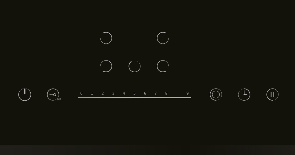 i Расположение панели управления варочной поверхностью относительно конфорок. Если панель расположена сбоку, она будет справа.