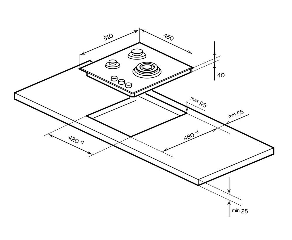i Приборы могут имеют разное количество газовых, электрических и индукционных конфорок. Выбирайте оптимальный вариант для комфортной готовки.