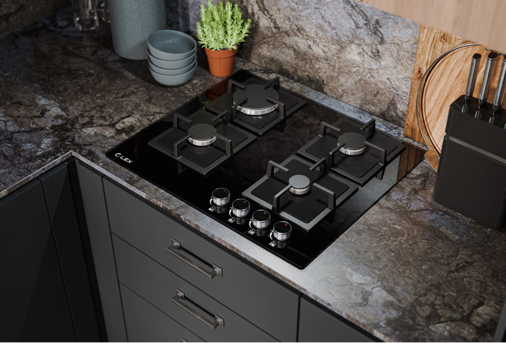 i Приборы могут имеют разное количество газовых, электрических и индукционных конфорок. Выбирайте оптимальный вариант для комфортной готовки.