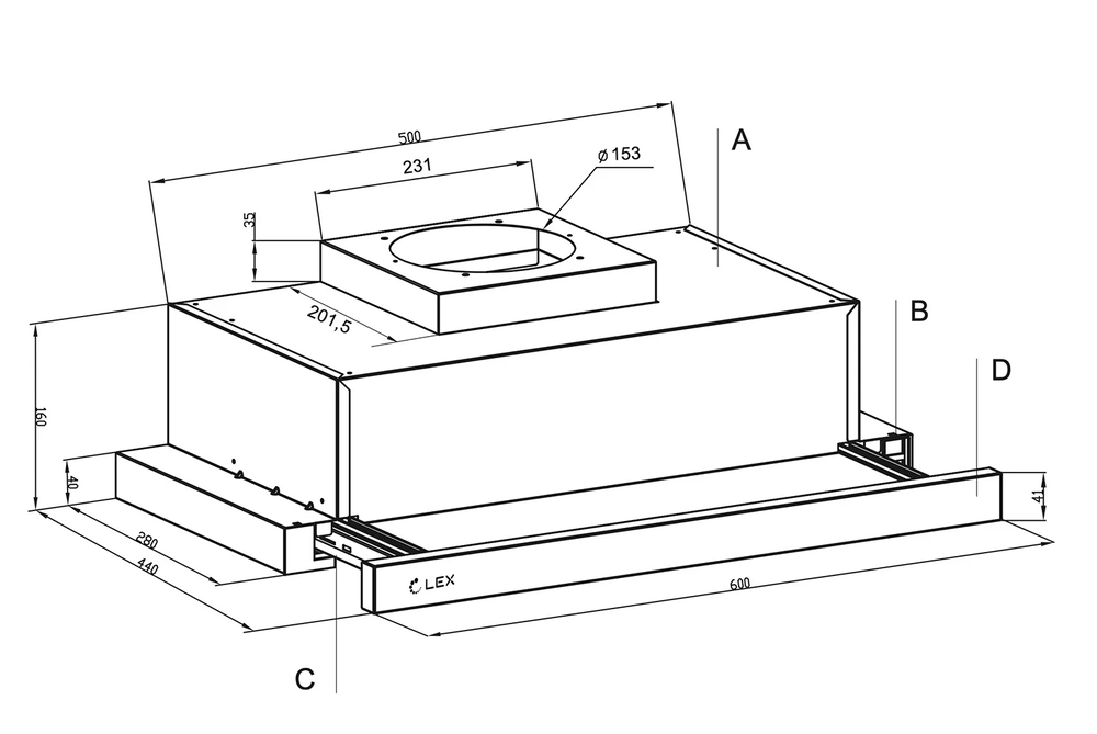 LEX Hermes 600 Black встраиваемая вытяжка телескопическая
