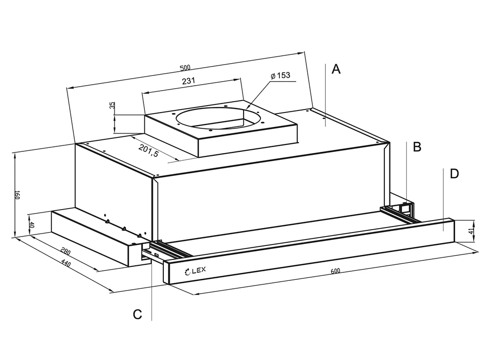 LEX Hermes 600 Inox встраиваемая вытяжка телескопическая
