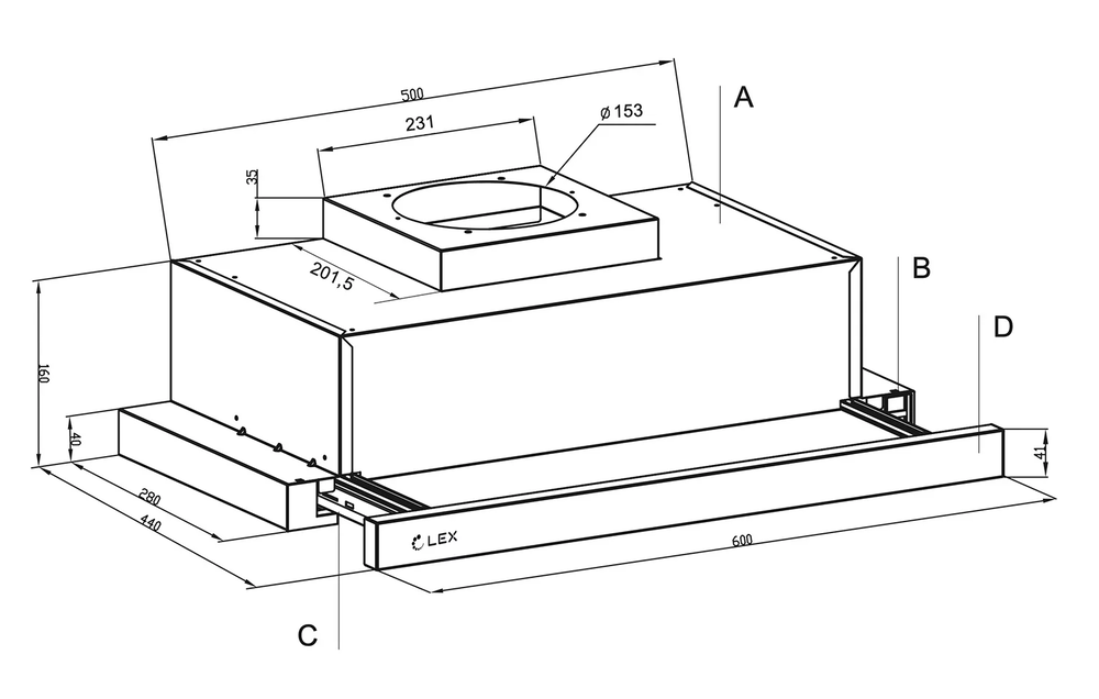 LEX Hermes 600 White встраиваемая вытяжка телескопическая