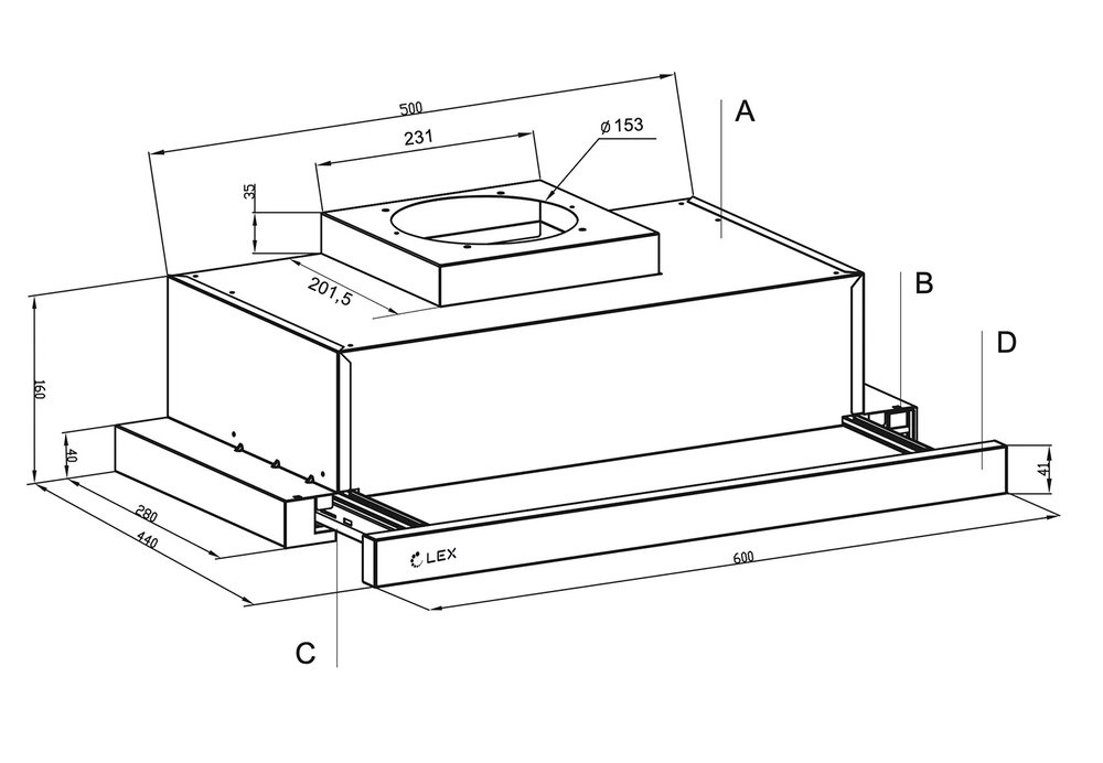 LEX Hermes G 600 Black встраиваемая вытяжка телескопическая