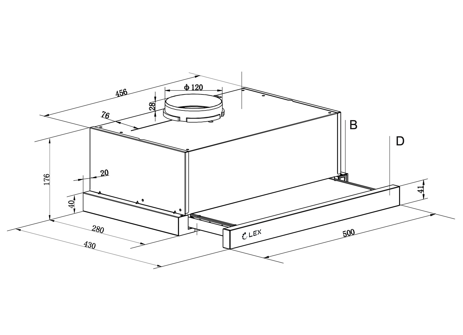 LEX HIDE 500 BLACK встраиваемая вытяжка телескопическая