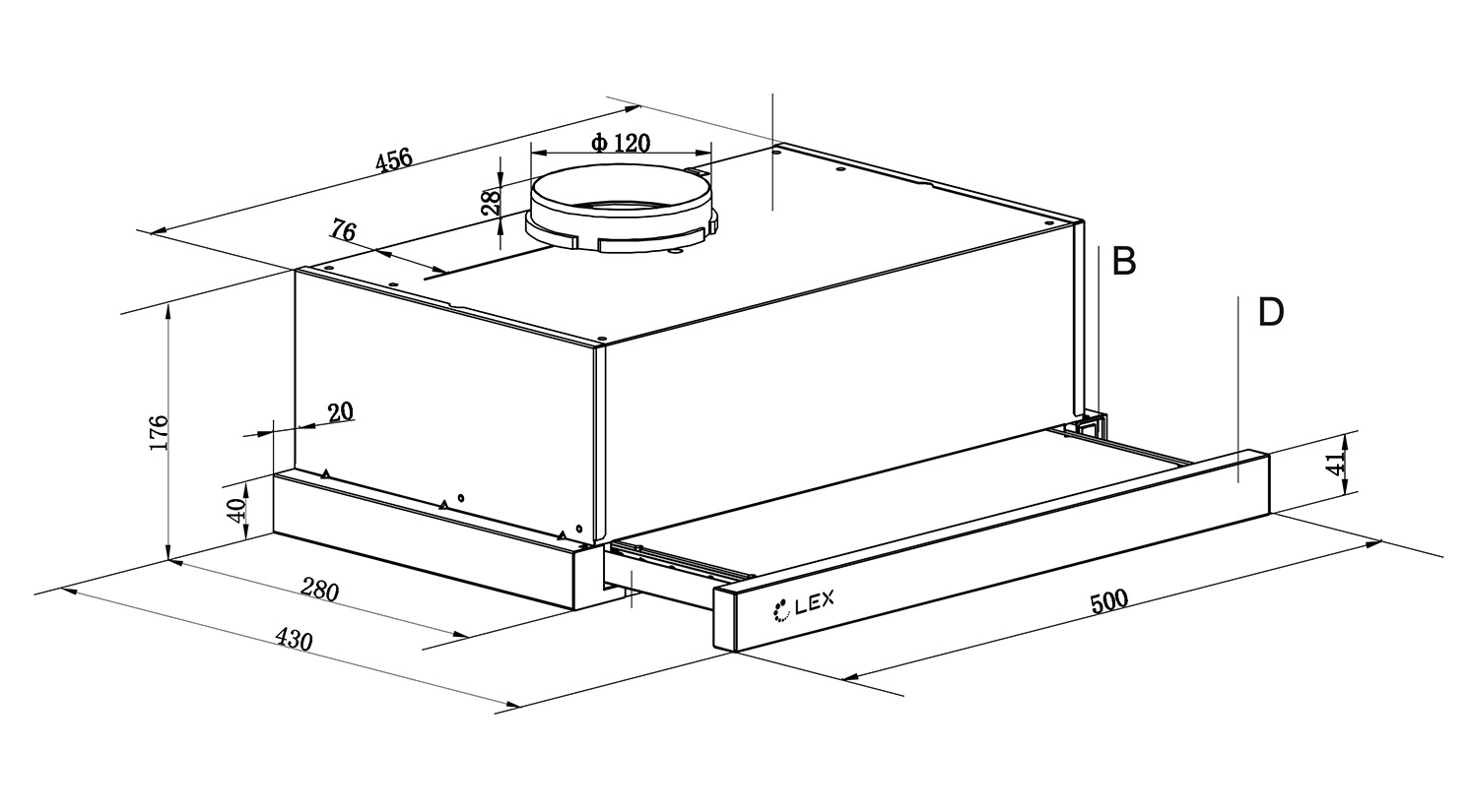 LEX HIDE 500 WHITE встраиваемая вытяжка телескопическая