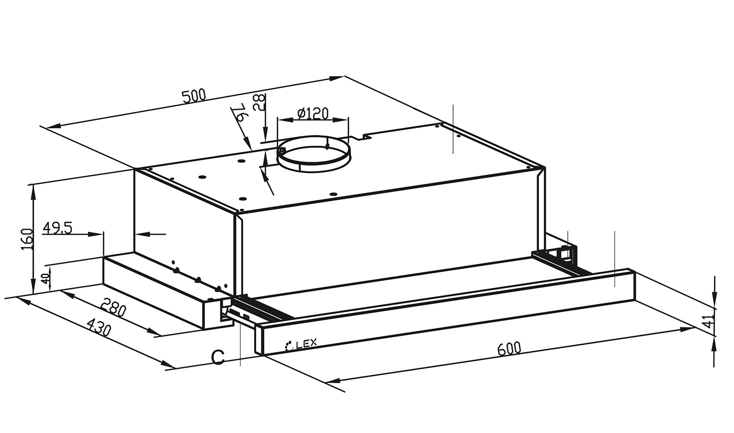 LEX HIDE 600 INOX встраиваемая вытяжка телескопическая