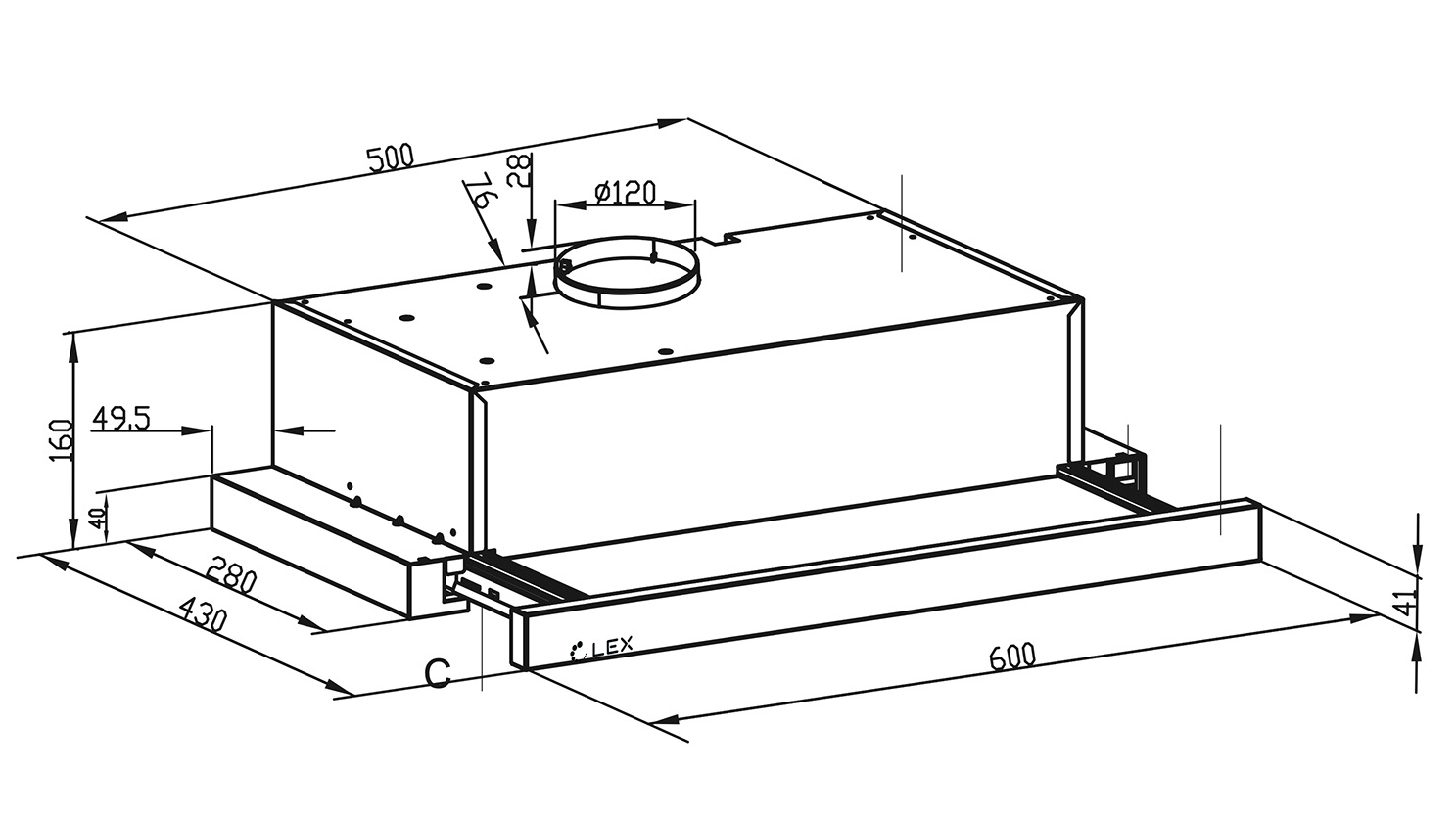 LEX HIDE 600 WHITE встраиваемая вытяжка телескопическая