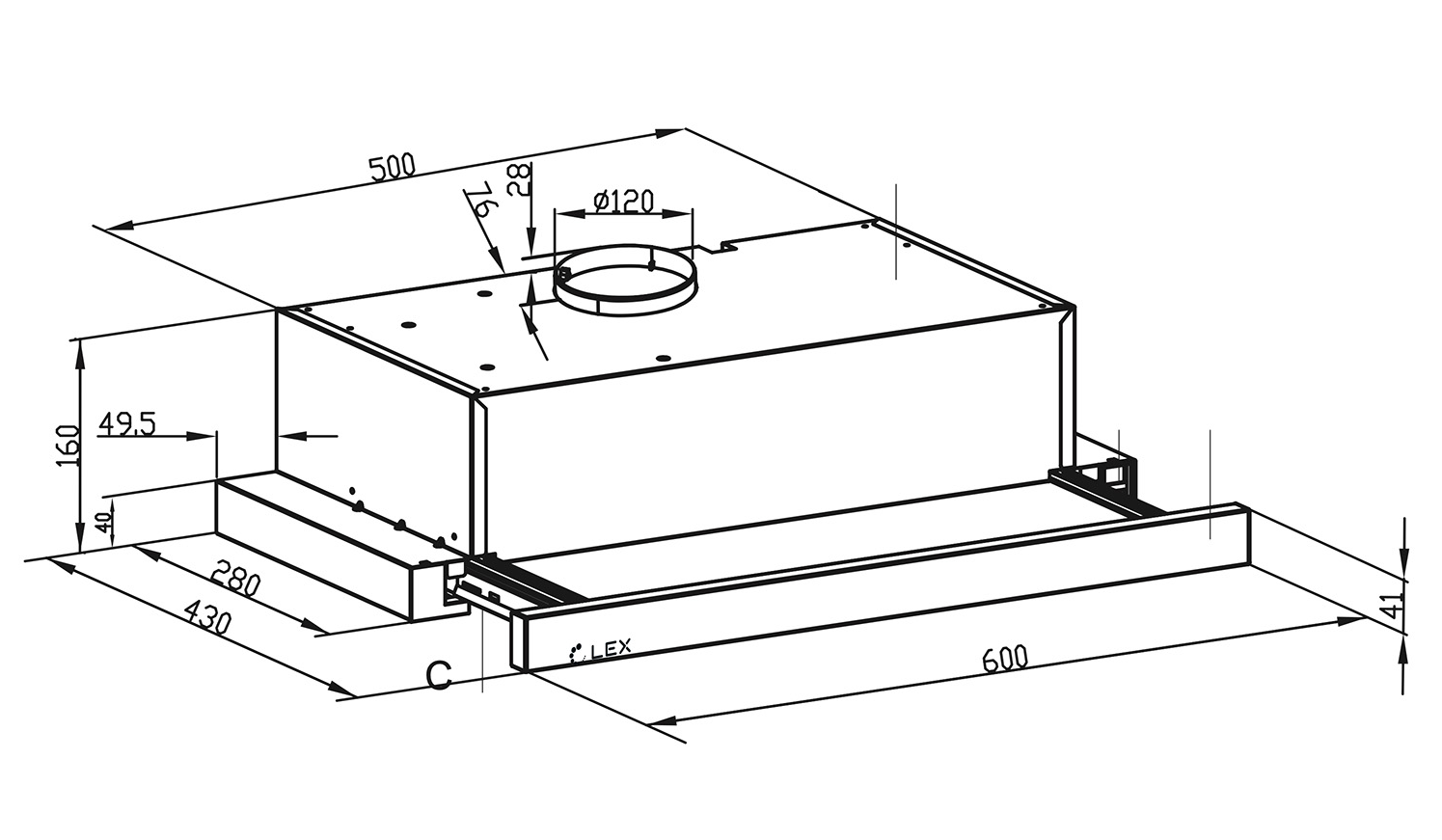 LEX HIDE G 600 BLACK встраиваемая вытяжка телескопическая