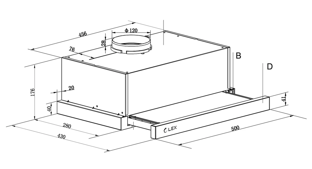 LEX Hogan 500 Inox встраиваемая вытяжка телескопическая