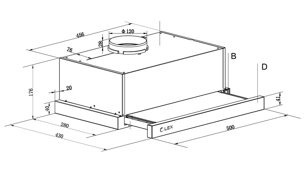 LEX Hogan 500 White встраиваемая вытяжка телескопическая