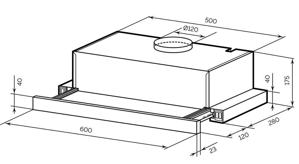 LEX Honver 2M 600 INOX встраиваемая вытяжка телескопическая
