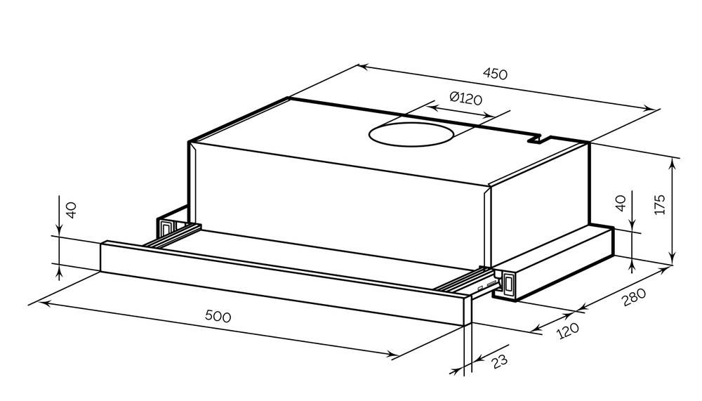 LEX Honver 500 BLACK встраиваемая вытяжка телескопическая