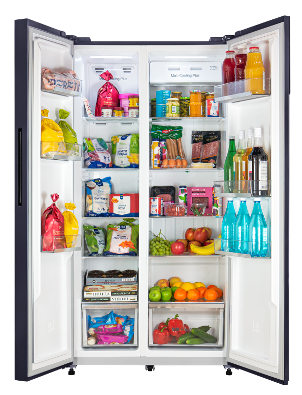 i Морозильная камера может быть расположена сверху, снизу от основной камеры, Side-by-Side. Также она может отсутствовать вовсе.