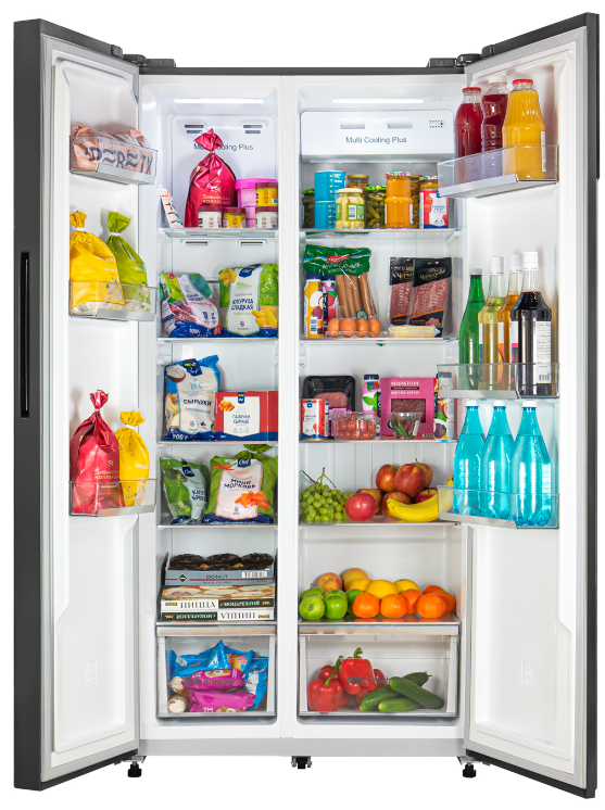 i Морозильная камера может быть расположена сверху, снизу от основной камеры, Side-by-Side. Также она может отсутствовать вовсе.