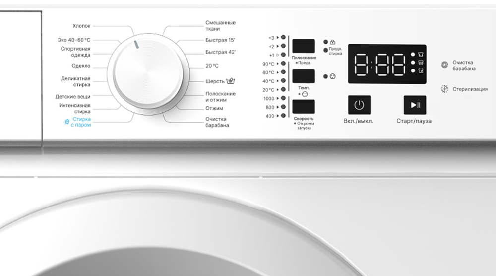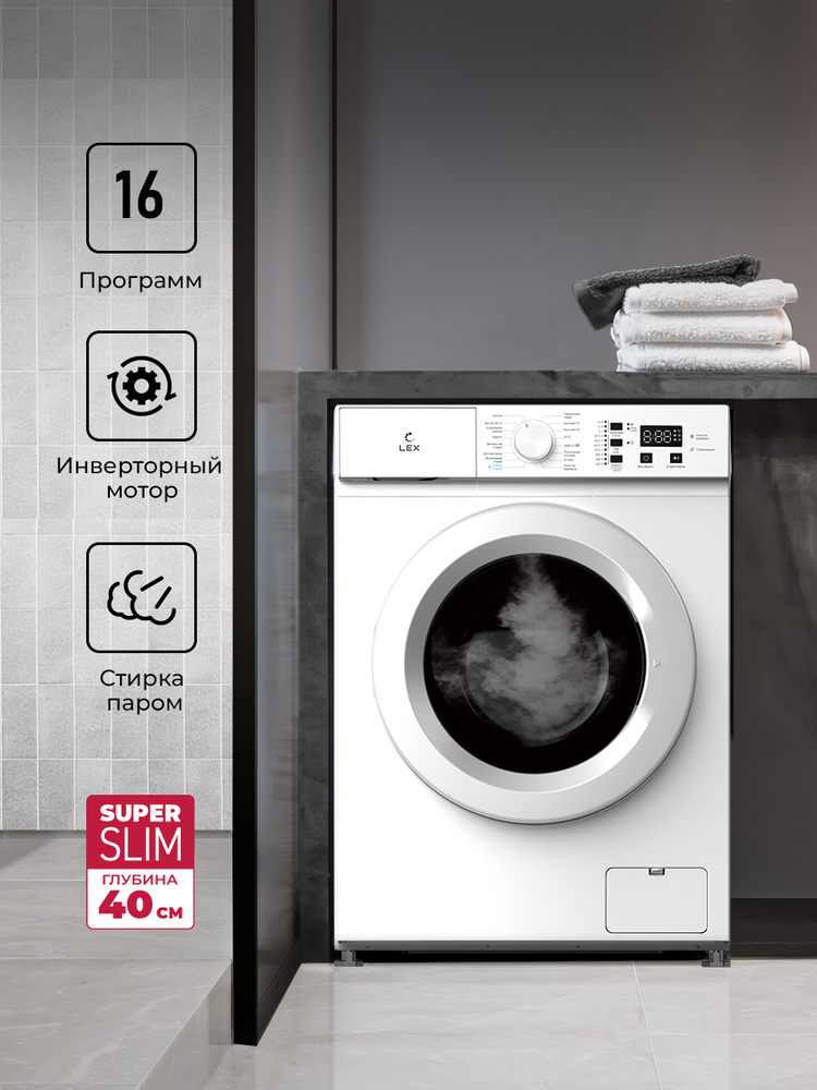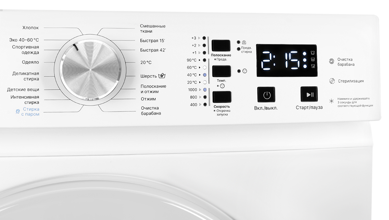 i Функция подачи пара из парогенератора в барабан позволит разгладить вещи после стирки, обработать их от бактерий, вирусов и аллергенов.