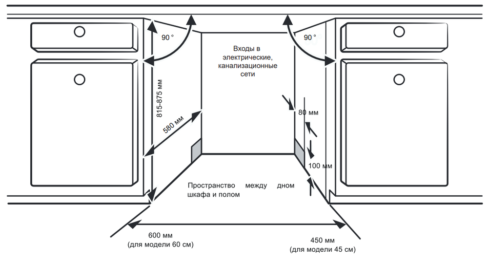 i Ширина корпуса электроприбора. Особенно важно точно знать точную допустимую ширину для встраиваемой техники.