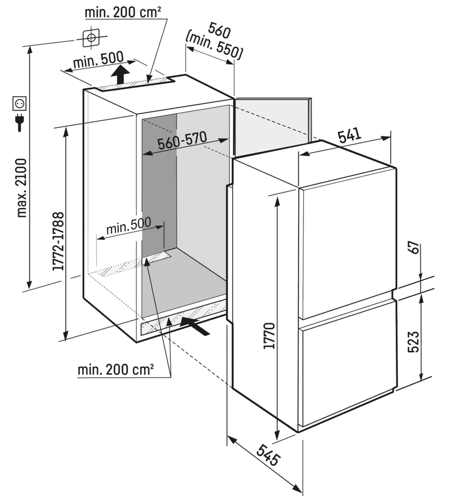 i Морозильная камера может быть расположена сверху, снизу от основной камеры, Side-by-Side. Также она может отсутствовать вовсе.