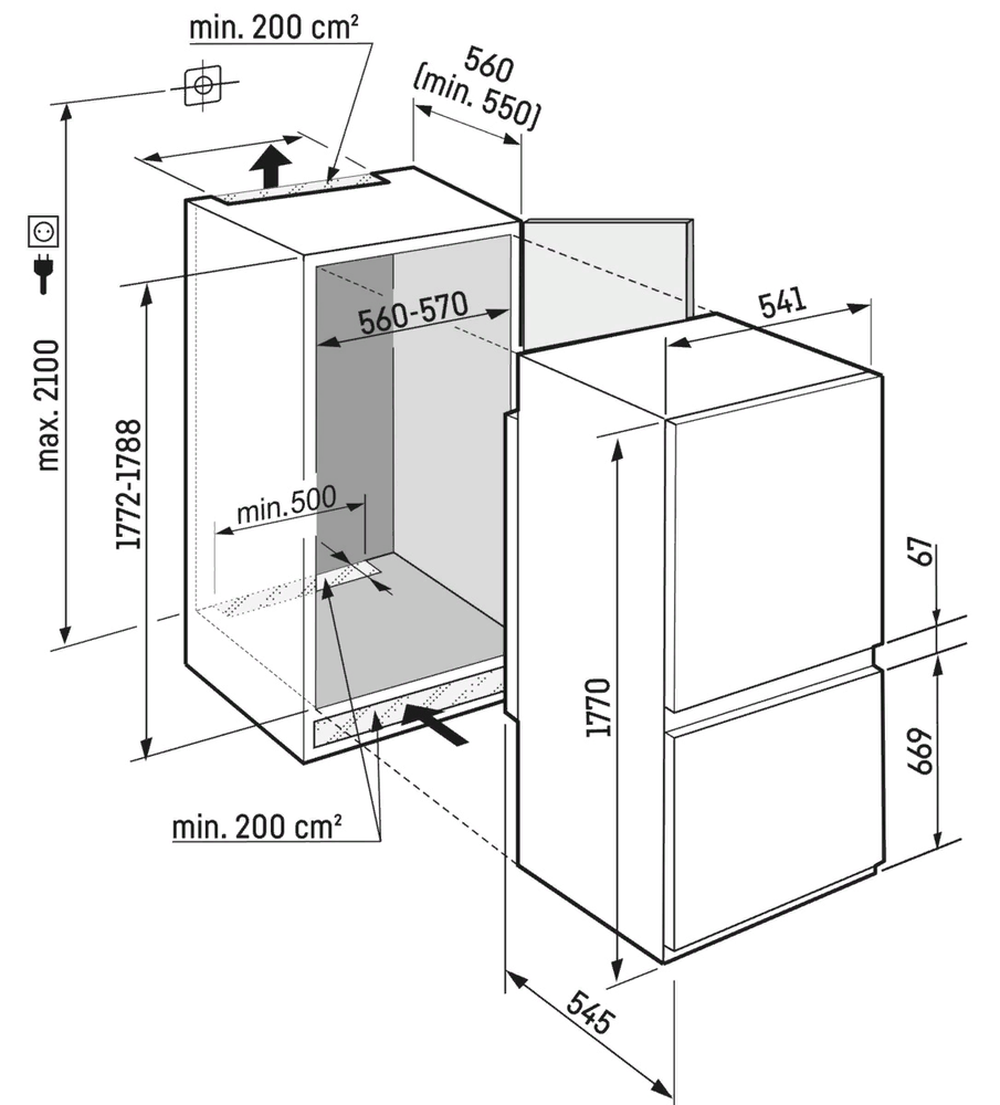 i Морозильная камера может быть расположена сверху, снизу от основной камеры, Side-by-Side. Также она может отсутствовать вовсе.