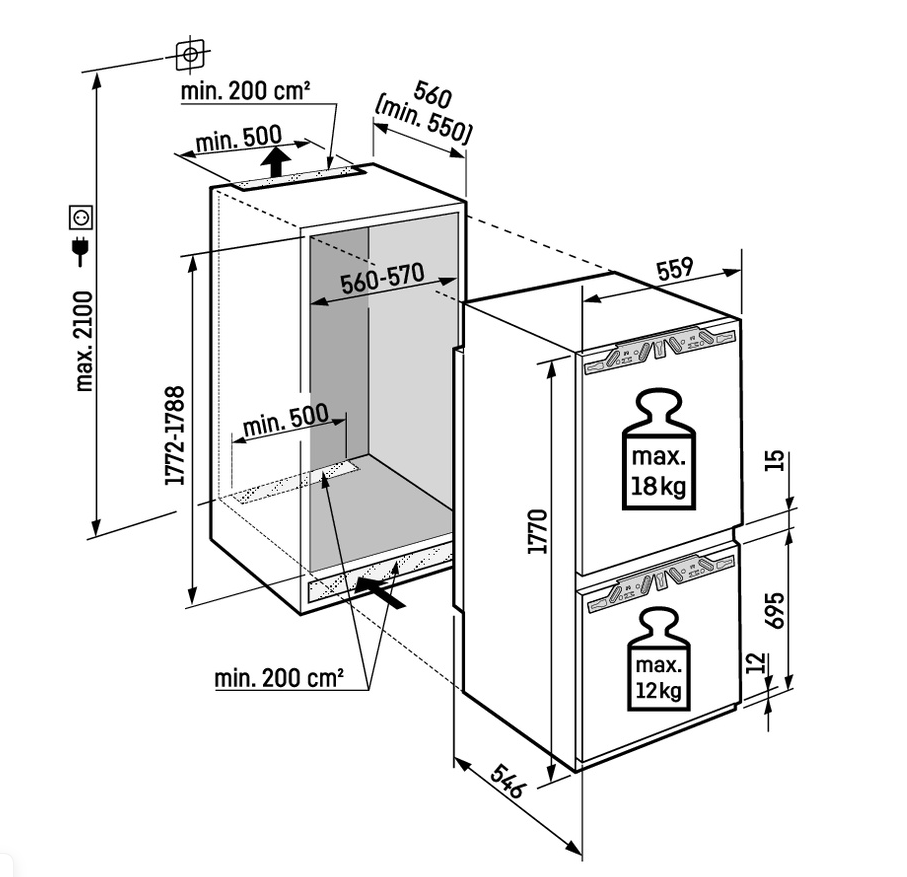 i Ширина корпуса электроприбора. Особенно важно точно знать точную допустимую ширину для встраиваемой техники.