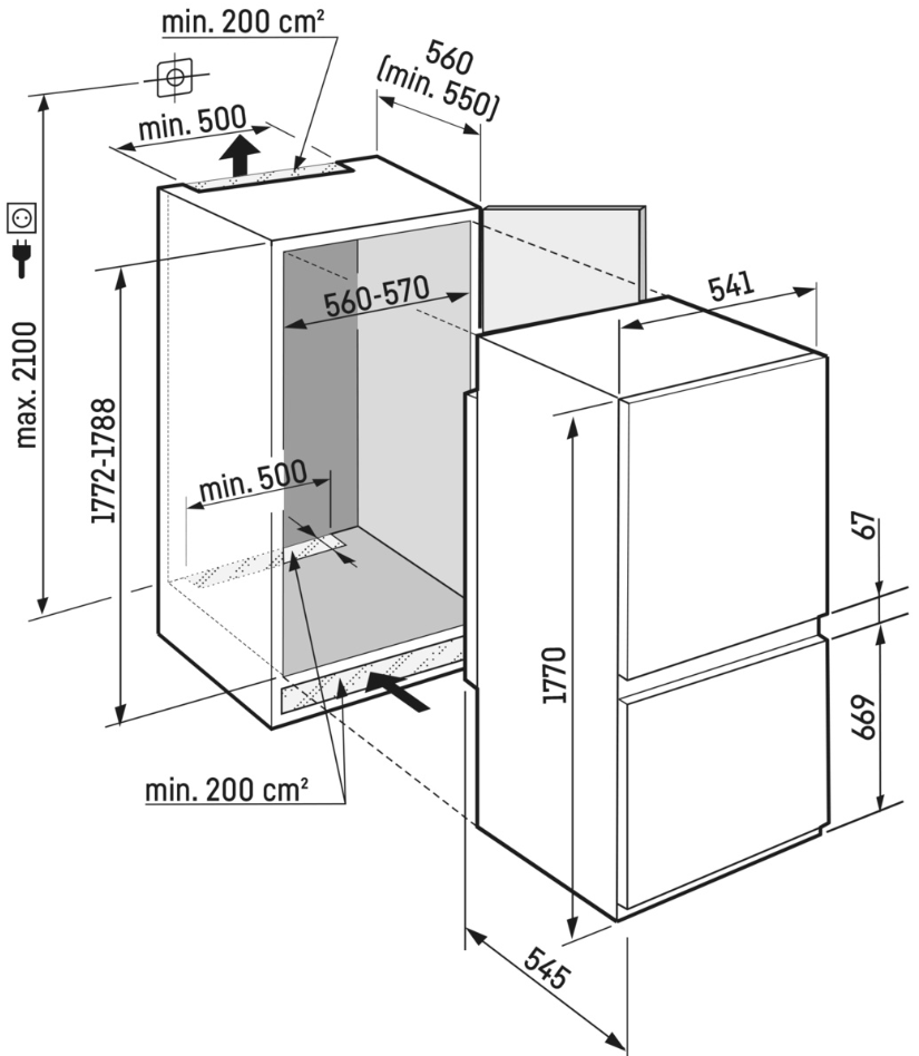 ICNSf 5103 pure NoFrost Встраиваемый комбинированный холодильник-морозильник с EasyFresh и NoFrost |