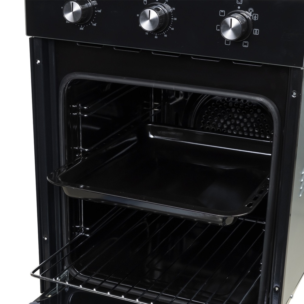 i У духового шкафа может быть газовый или электрический тип питания. Газовые духовки экономичнее, а электрические имеют больше режимов работы.