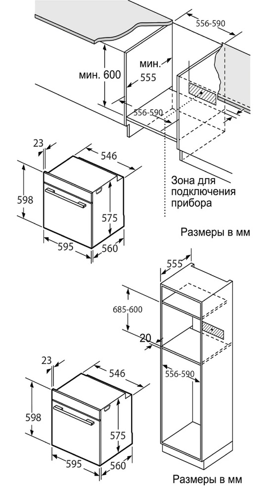 i Ширина корпуса электроприбора. Особенно важно точно знать точную допустимую ширину для встраиваемой техники.
