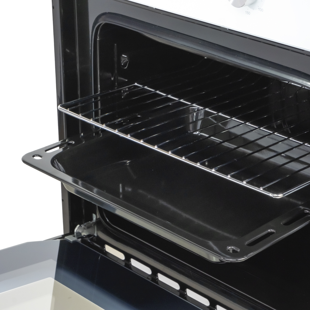 i Выдвижные металлические полозья, которые легко выезжают за пределы камеры духовки вместе с противнем, не давая ему упасть.