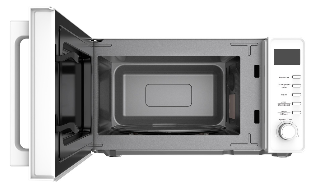 i Поворотный стол — это крутящееся блюдо в центре. Его отсутствие позволяет поместить в камеру посуду большого размера или неправильной формы.