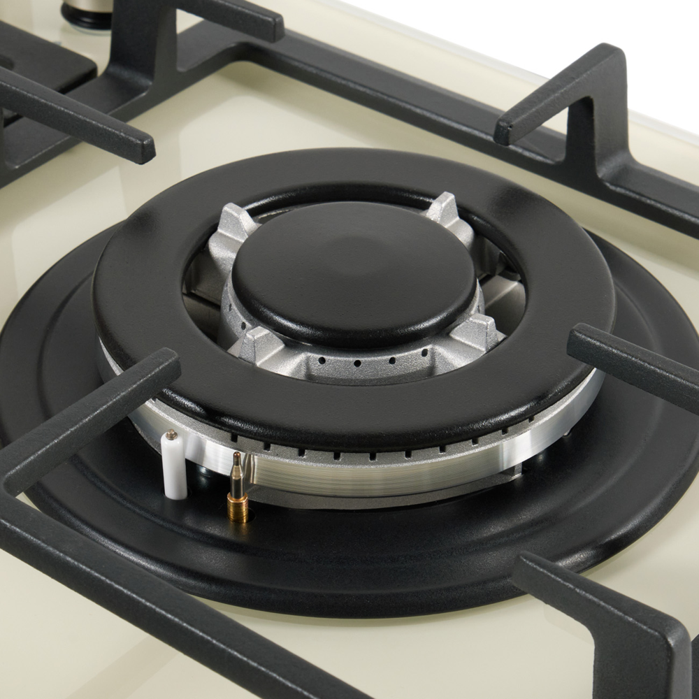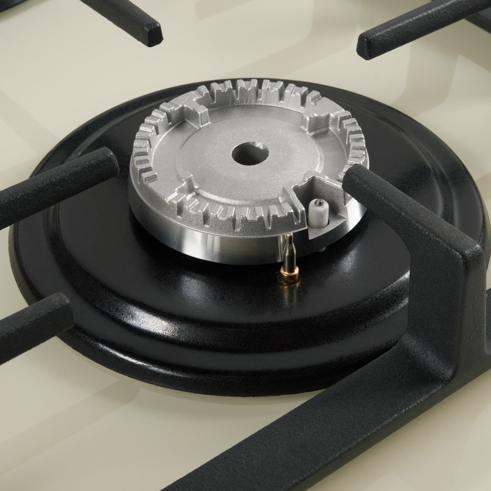 i Система безопасности в газовых плитах, варочных поверхностях и варочных центрах. Если пламя гаснет, подача газа прекращается автоматически.
