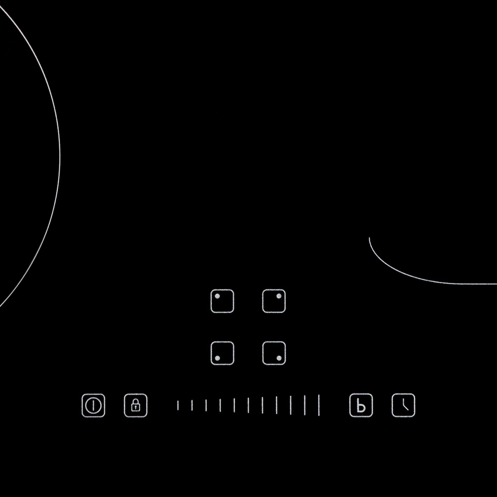 i Расположение панели управления варочной поверхностью относительно конфорок. Если панель расположена сбоку, она будет справа.