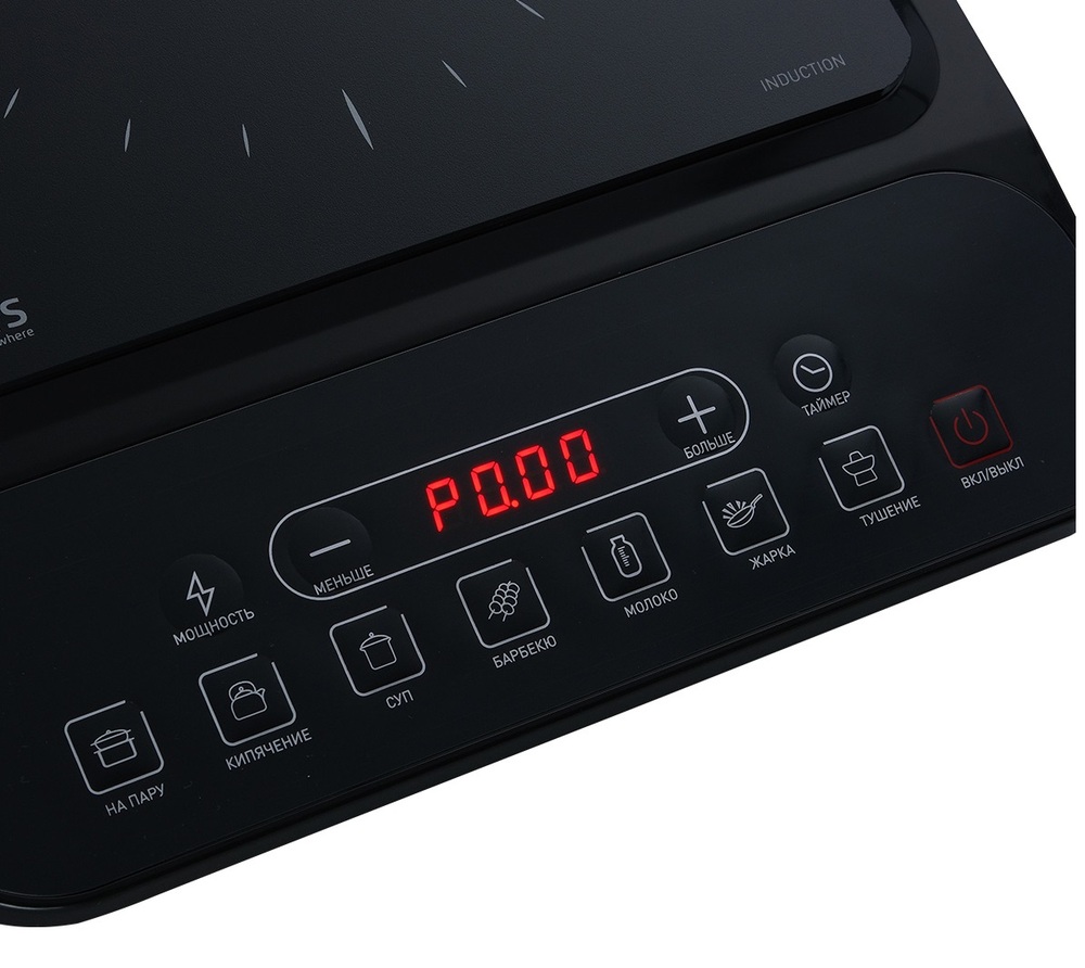 i На варочной поверхности может быть от 2 до 8 электрических конфорок с индукционным нагревом. Для них нужна специальная посуда.