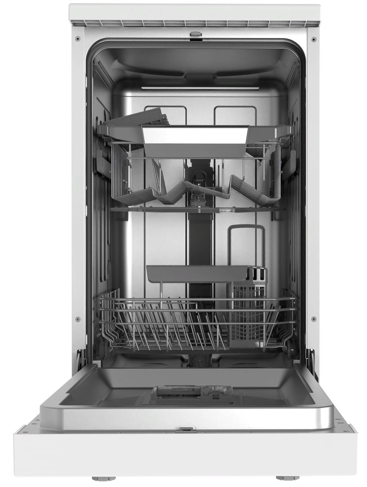 i В стандартной посудомоечной машине 3 корзины — 2 для посуды и 1 для столовых приборов. Современные модели могут иметь от 1 до 4 корзин.