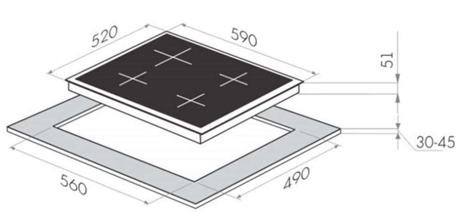 i На варочной поверхности может быть от 2 до 8 электрических конфорок с индукционным нагревом. Для них нужна специальная посуда.