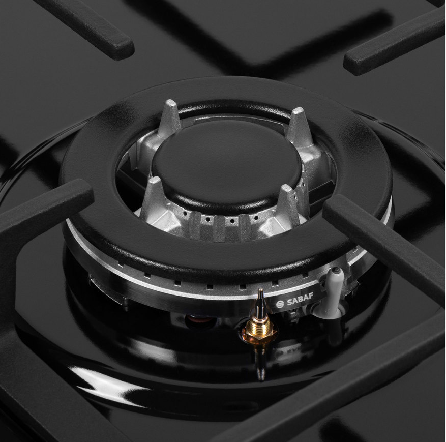 i Система безопасности в газовых плитах, варочных поверхностях и варочных центрах. Если пламя гаснет, подача газа прекращается автоматически.