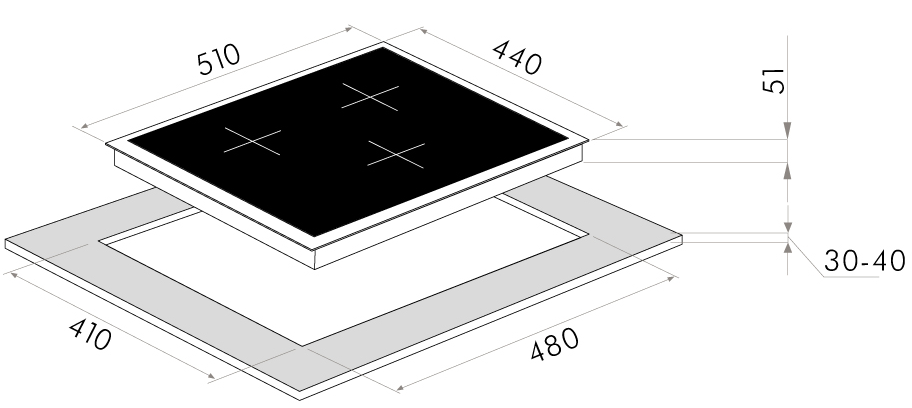 i Материал, из которого изготовлена варочная поверхность, или тип энергии, который используется для ее работы.