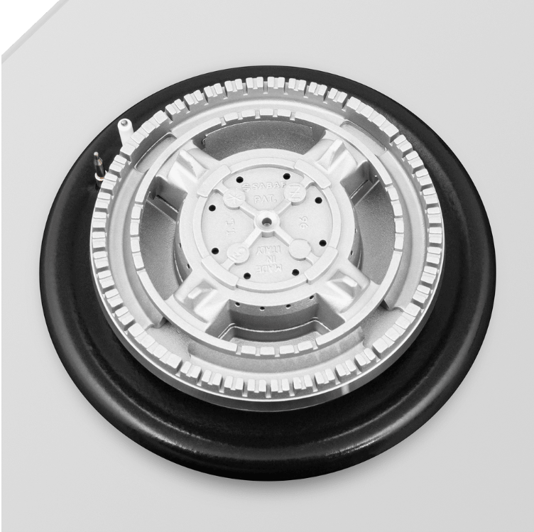 i Система безопасности в газовых плитах, варочных поверхностях и варочных центрах. Если пламя гаснет, подача газа прекращается автоматически.