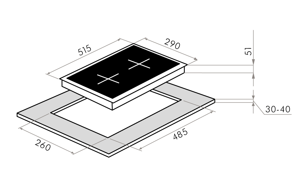 i Приборы могут имеют разное количество газовых, электрических и индукционных конфорок. Выбирайте оптимальный вариант для комфортной готовки.