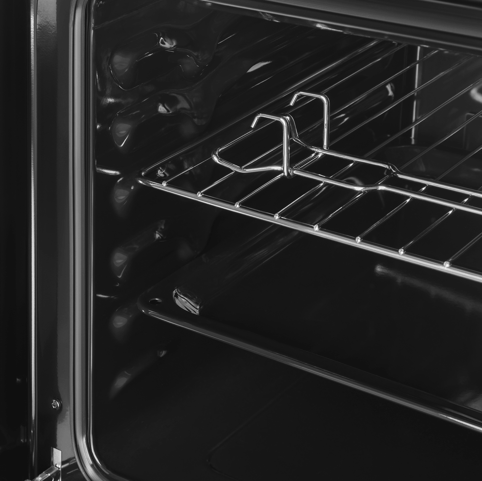 i Выдвижные металлические полозья, которые легко выезжают за пределы камеры духовки вместе с противнем, не давая ему упасть.
