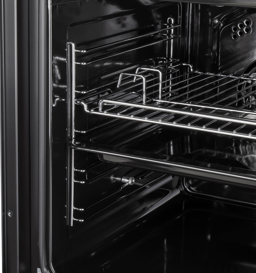 i Выдвижные металлические полозья, которые легко выезжают за пределы камеры духовки вместе с противнем, не давая ему упасть.